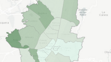 Muestra el promedio de ingresos de las personas económicamente activa en cada localidad de la ciudad en e...