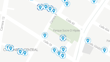 Representación por medio de puntos de la ubicación aproximada de las agencias de viajes en Bogotá. Las ag...