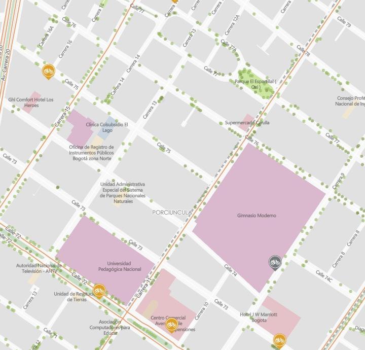 Capa geográfica en geometría punto que permite visualizar la ubicación de estacionamientos que cuentan con infraestructura para habilitar el parqueo temporal de Bicicletas, pueden estar en parqueaderos fuera de vía, en estaciones del sistema Transmilenio, puntos de encuentro administrados por el IPES, en bibliotecas, centros comerciales y instituciones educativas.