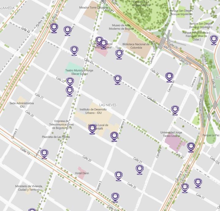 Se encuentra disponible en formatos de uso común y en servicios web geográficos estándar de la OGC y REST. Encuéntralo también en los portales web mapas.bogota.gov.co y datosabiertos.bogota.gov.co