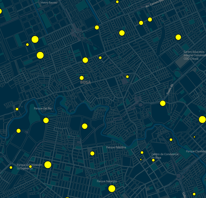 Se encuentra disponible a través servicios web geográficos estándar OGC y REST y otros formatos de intercambio, para su visualización y descarga. Encuéntralo también en mapas.bogota.gov.co y datosabiertos.gov.co