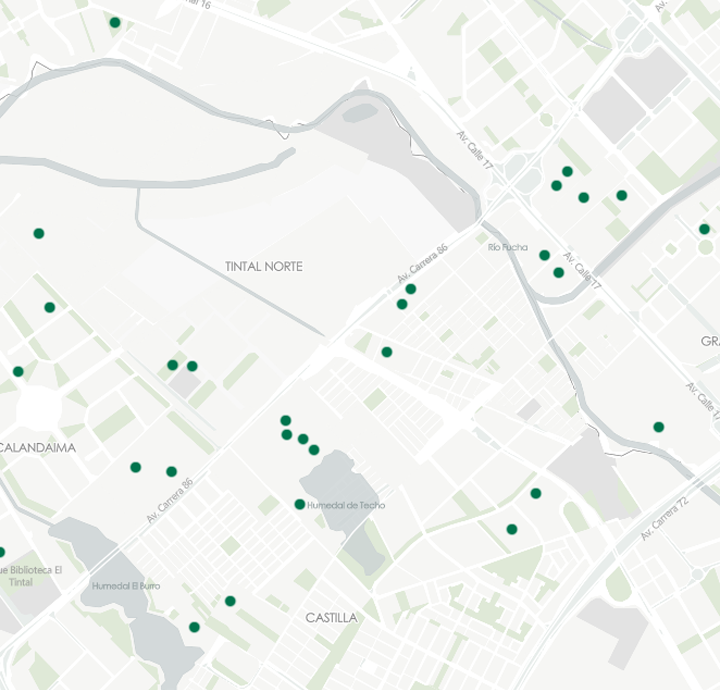 Se encuentra disponible a través servicios web geográficos estándar OGC y REST y otros formatos de intercambio, para su visualización y descarga. Encuéntralo también en mapas.bogota.gov.co y datosabiertos.gov.co